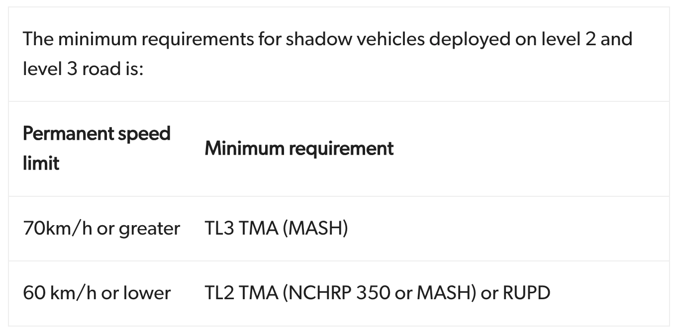 On 31st December 2020 regulation changes came into force with regards to TMA (truck mounted attenuators, otherwise know as ‘crashpads’) deployed on shadow vehicles whilst at work on level 2 & level 3 roads.