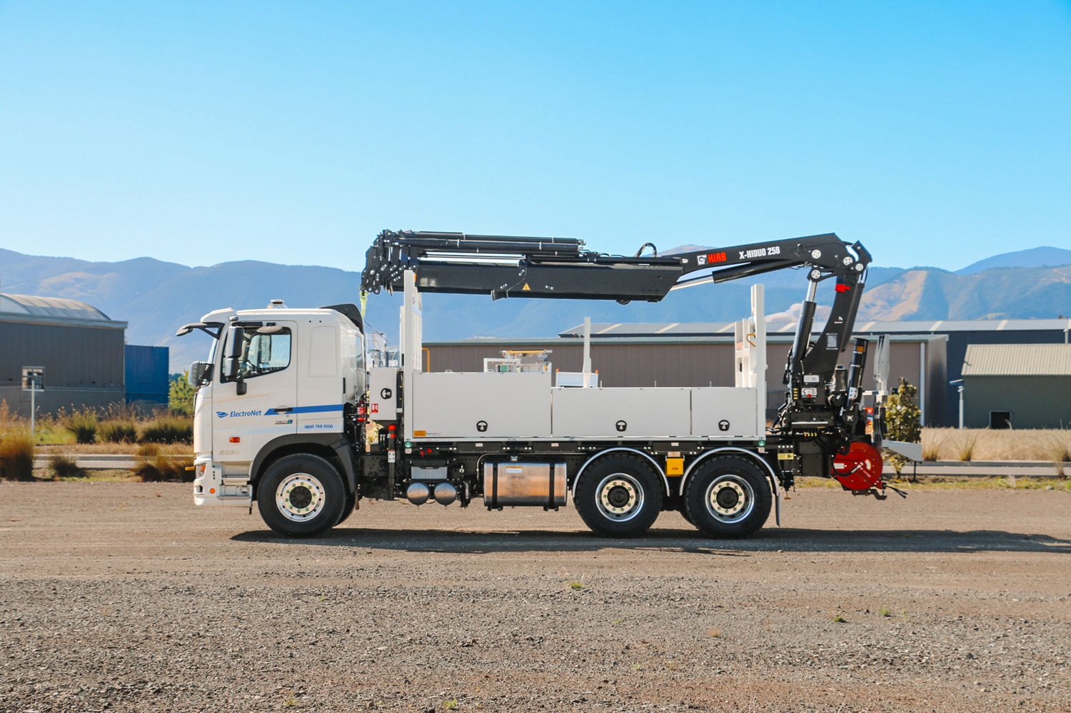 A little different from our usual lines crane trucks, this build features a powerful Hiab X-HiDuo 258E-5 crane. With an impressive 13.8 metres of hydraulic outreach and a substantial 22.6 tonne-metre lifting moment, it’s purpose-built for heavy-duty performance where it matters most. Whether it’s lifting poles, transformers, or essential equipment, this crane delivers the strength and precision required for demanding electrical infrastructure work.