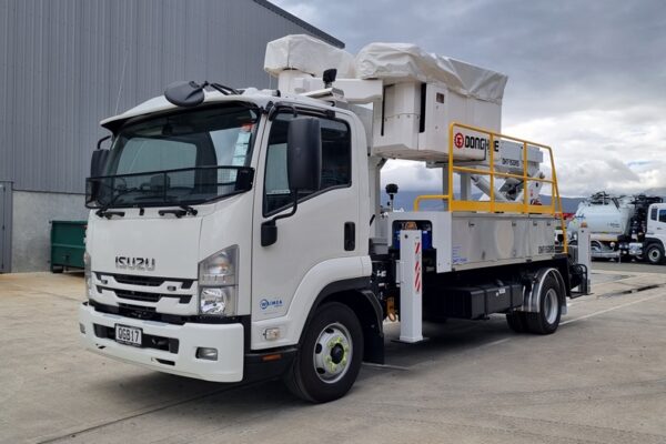 Mounted on an Isuzu FRR500, it offers plenty of storage for linesman equipment, yet compact enough to offer tight turning circle when navigating an urban area.