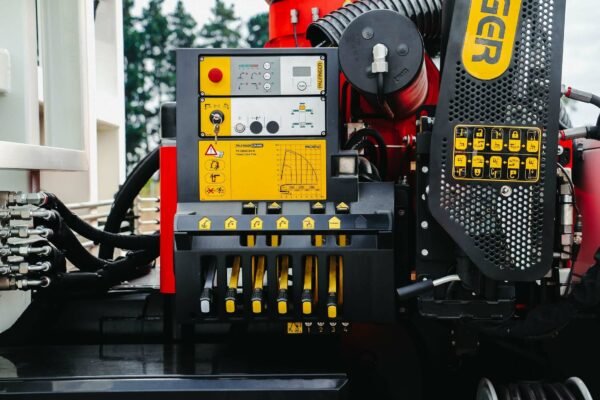 This lines crane truck is designed to perform in a wide range of applications ranging from busy urban streets to off road tracks. The powerful 320 HP Hino has four-wheel drive with traction control and a driver friendly Alison push button transmission. The medium wheelbase has a tight turning circle and excellent maneuverability. The Palfinger PK26 crane will easily handle distribution power poles, cable drums and transformers up to 5.2 tonne. HPSC is fitted for operator safety, as it automatically limits the lift zone depending on how much the stabilisers have been extended. The remote radio controller is designed specifically for the lines application providing auger and tamper controls. The hydraulic hoses are internally routed to the boom tip, and the truck is set up with auxiliary functions for pole puller and tamper via a retractable hose reel at the rear.
