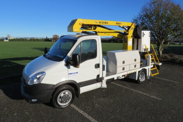 The Iveco Daily truck can be driven on a class 1 car licence. 6 Speed automatic transmission, 3 litre turbo diesel engine. Kitted out with toolboxes, stabiliser pad holders, class 1 flashing lights, and stabiliser legs.