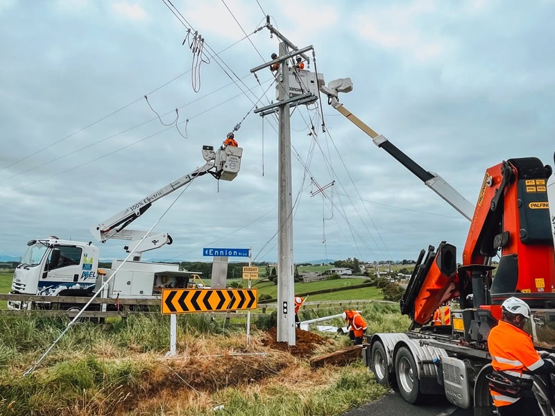 Waimea-built specialist utility vehicles replacing a power pole in Hamilton